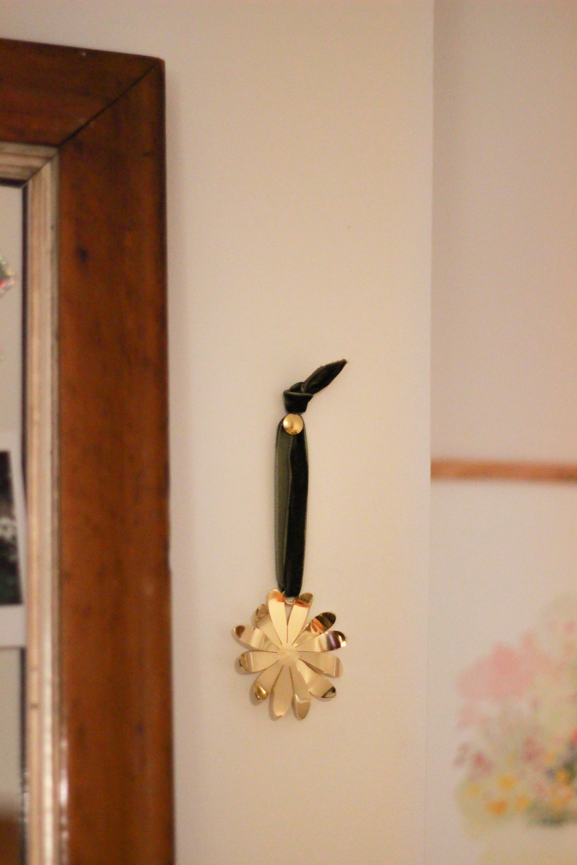 À suspendre dans votre intérieur, pour décorer un mur ou une poignée, cette jolie fleur dorée apportera une touche de poésie et de nature à votre décoration.