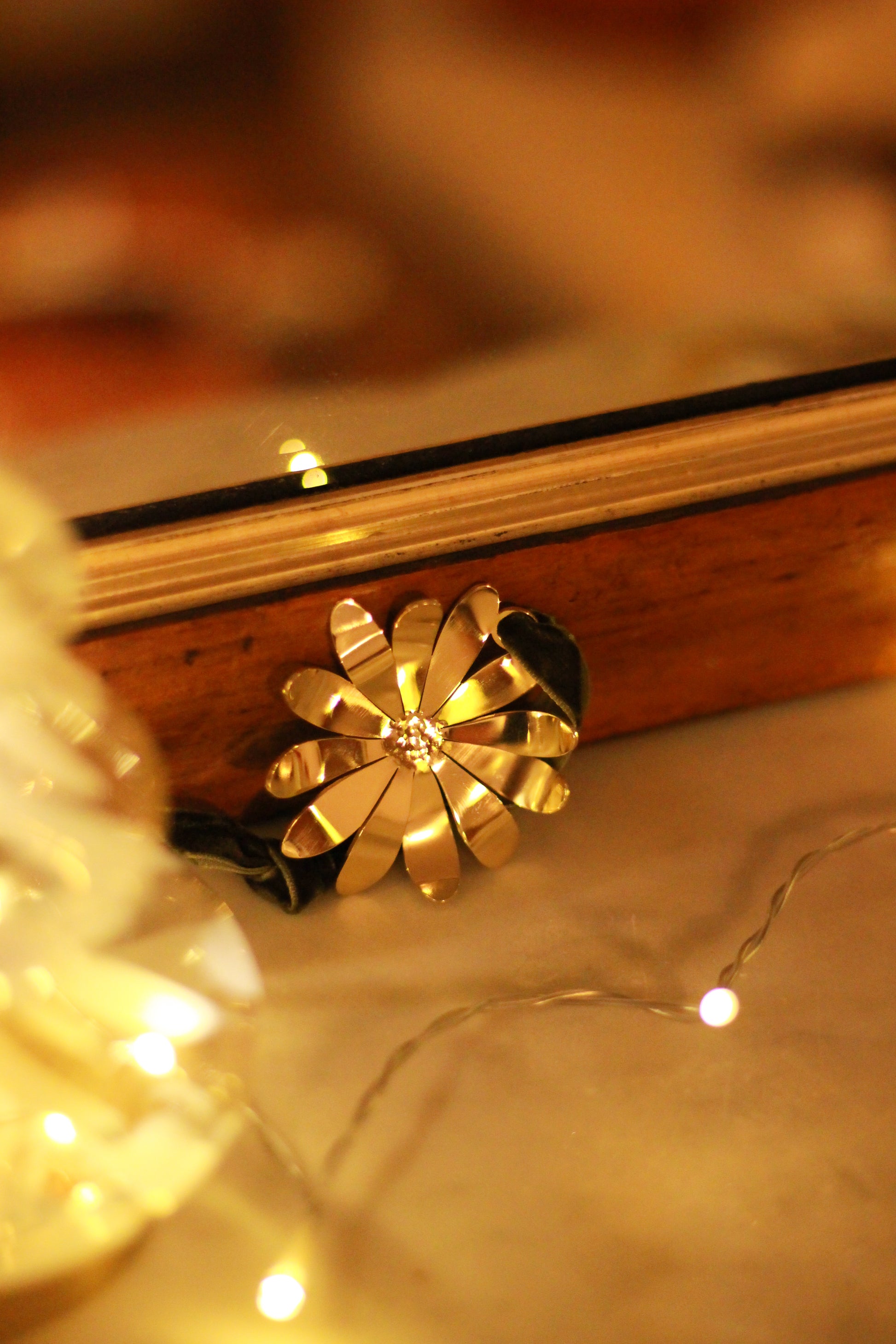 Décoration artisanale en laiton brut.